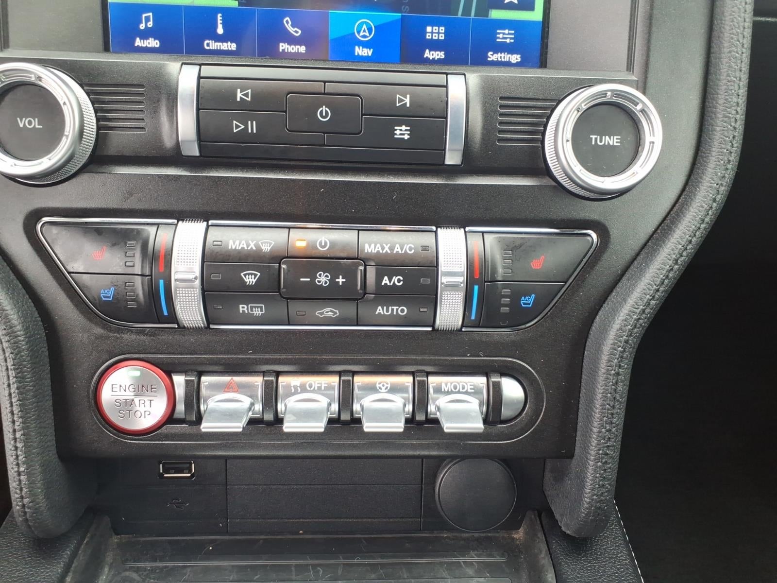 Mustang EcoBoost Premium Convertible, 2D Convertible, EcoBoost 2.3L I4 GTDi DOHC Turbocharged VCT, 10-Speed Automatic, RWD, 12 LCD Digital Instrument Cluster w/MyColor, 2.3L High Performance Package, 3.55 Limited Slip Rear Axle, 4-Wheel Disc Brakes, ABS brakes, Active Valve Performance Exhaust, ActiveX Bucket Seats, Adaptive Cruise Control, AM/FM radio: SiriusXM, AM/FM Stereo, Auto High-beam Headlights, Auto-dimming Rear-View mirror, Automatic temperature control, Black Accent Package, Black Blade Decklid Spoiler, Black Front & Rear Pony Badges, Black Grille, Black Mirror Caps, Brake assist, Carbonized Gray Mirror Caps, Climate Controlled Heated/Cooled Front Seats, Compass, Convertible roof lining, Delay-off headlights, Driver door bin, Driver vanity mirror, Electronic Stability Control, Engine Spun Aluminum Instrument Panel, Equipment Group 201A, Exterior Parking Camera Rear, Ford Safe & Smart Package, Four wheel independent suspension, Front dual zone A/C, Fully automatic headlights, Gauge Pack (Oil Pressure & Boost), Glass rear window, Heated front seats, Heated Steering Wheel, Heavy-Duty Front Springs, Integrated Turn Signals, Larger Brake Rotors, Larger Radiator, Leather-Trimmed Bucket Seats w/Color Accents, Memory Driver Seat, Mirrors & Ambient Lighting, Navigation System, Panic alarm, Power passenger seat, Rain sensing wipers, Rear anti-roll bar, Rear Parking Sensors, Rear window defroster, Remote keyless entry, Security system, SiriusXM Radio, Speed control, Speed-sensing steering, Speed-Sensitive Wipers, Spoiler, Steering wheel mounted audio controls, SYNC 3 Communications & Entertainment System, Tachometer, Telescoping steering wheel, Tilt steering wheel, Traction control, Trip computer, Universal Garage Door Opener (UGDO), Variably intermittent wipers, Ventilated front seats, Voice-Activated Touch-Screen Navigation System, Voltmeter, Wheels: 19 x 8.5 Ebony Black-Painted Aluminum, Wheels: 19 x 9 Machined-Face Aluminum.