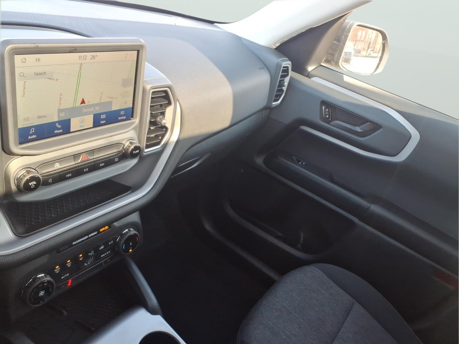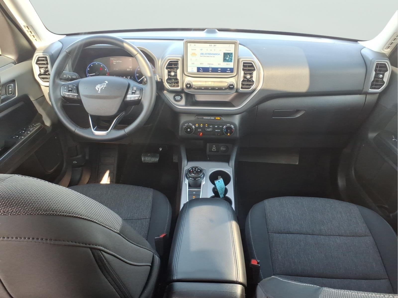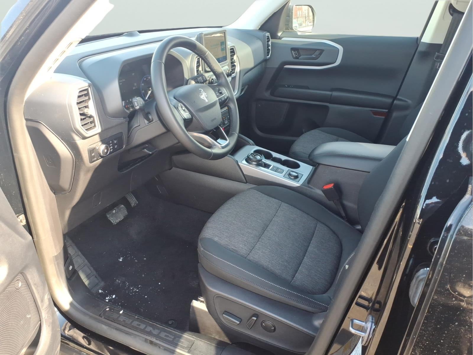 Bronco Sport Big Bend, 4D Sport Utility, 1.5L EcoBoost, 8-Speed Automatic, 4WD, Shadow Black, Ebony Cloth, 2nd Row Carpeted Seatback, 4-Wheel Disc Brakes, ABS brakes, Alloy wheels, AM/FM Stereo, Auto High-beam Headlights, Automatic temperature control, Brake assist, Compass, Convenience Package, Delay-off headlights, Electronic Stability Control, Equipment Group 200A, Evasive Steering Assist, Ford Co-Pilot360 Assist+, Four wheel independent suspension, Front Driver/Passenger Seat Back Map Pockets, Fully automatic headlights, Heated door mirrors, Heated Front Bucket Seats, Illuminated entry, Intelligent Adaptive Cruise Control w/Stop & Go, LED Fog Lamps, Occupant sensing airbag, Outside temperature display, Panic alarm, Power Moonroof, Premium Wrapped Steering Wheel, Radio data system, Rear anti-roll bar, Rear Parking Sensors, Rear window defroster, Rear window wiper, Remote keyless entry, Security system, SiriusXM, Speed control, Speed-sensing steering, Speed-Sensitive Wipers, Steering wheel mounted audio controls, SYNC 3 Communications & Entertainment System, Tachometer, Telescoping steering wheel, Tilt steering wheel, Traction control, Trip computer, Universal Garage Door Opener (UGDO), Variably intermittent wipers, Voice-Activated Touchscreen Navigation System, Wheels: 17 Carbonized Gray-Painted Aluminum, Wireless Charging Pad.